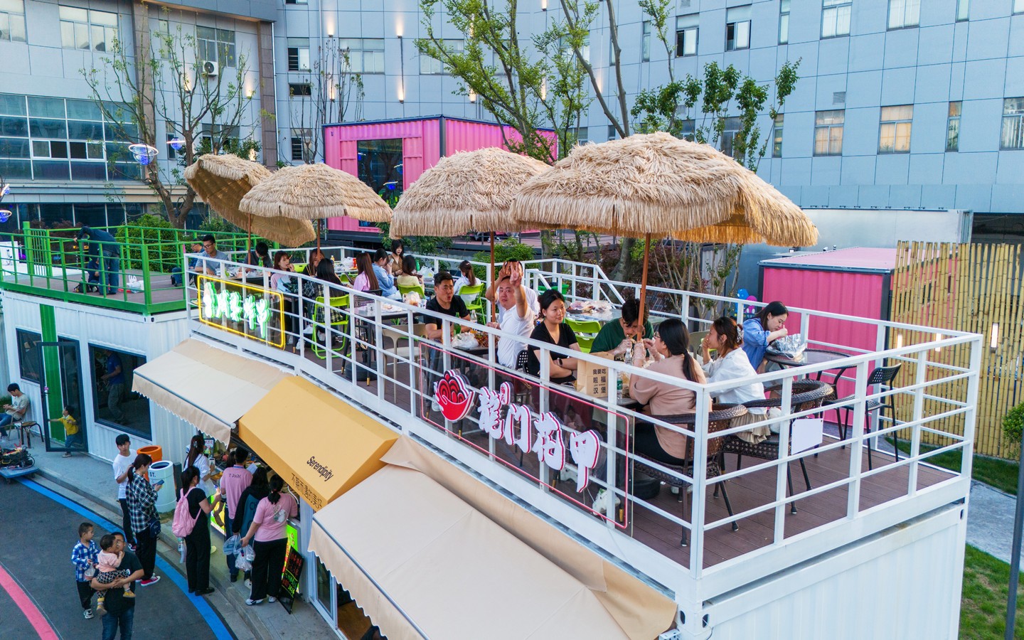 的核心銜接點;身處長三角知名產(chǎn)教城融合示范區(qū),緊鄰常州大學(xué)城、科教城。街區(qū)占地約120畝,已投資1.5億元,定位“Z世代”青年網(wǎng)紅潮集地,切中文商旅融合、夜經(jīng)濟(jì)、她經(jīng)濟(jì),通過創(chuàng)意餐飲、文創(chuàng)市集、微醺空間、日咖夜酒、潮流運(yùn)動、藝術(shù)研學(xué)、宴會中心、網(wǎng)紅書屋、親子文娛、城市營地等多功能社交業(yè)態(tài),立足打造長三角城市微度假特色目的地與文旅新地標(biāo)。作為開放式城市公園風(fēng)格,街區(qū)分“東中西”3大區(qū)域、7塊生活版塊,聚集了創(chuàng)意餐飲、文創(chuàng)市集、潮流運(yùn)動、藝術(shù)研學(xué)、親子文娛、城市營地等多功能社交業(yè)態(tài)。其中,“運(yùn)動+藝術(shù)”雙活動廣場超1萬平方米,汽車、森系街區(qū)、無界秀場、國際友人俱樂部、青年情緒引力場等創(chuàng)意主題空間將陸續(xù)上線。